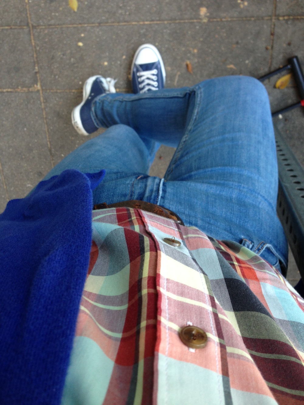 And I am dressed accordingly. Today is one of those days that everything I am wearing comes from the same store. My shirt is made from a very light plaid cotton, with really vivid colors. I bought it for my first trip to Provincetown, in Massachusetts. My cardigan is also a light cotton in bright blue. Everything, including my skinny jeans, is from H&M, (By the way, Provincetown and the entire Cape Cod became immediately one of my favorite places in the USA. Can’t wait to go back).