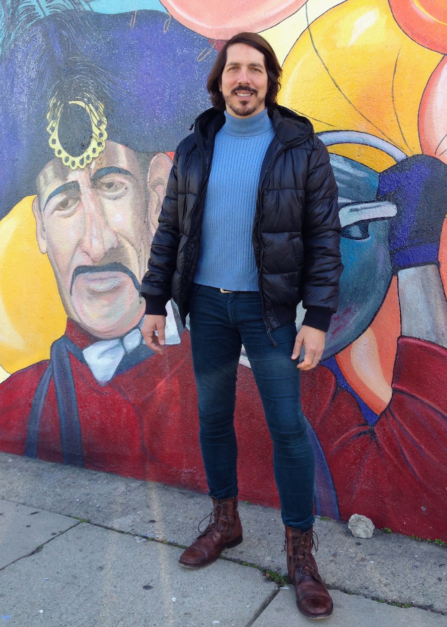 Baby blue cotton turtleneck (by Gap) and dark blue skinny jeans (by H&M). And my favorite pair of boots that I don’t wear often enough (Reaction by Kenneth Cole).