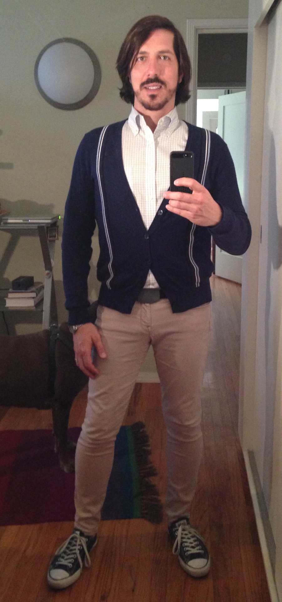 Nice and simple today with my skinny jeans from Gap, shirt by UniQlo, cardigan by Ben Sherman and shoes by Converse.