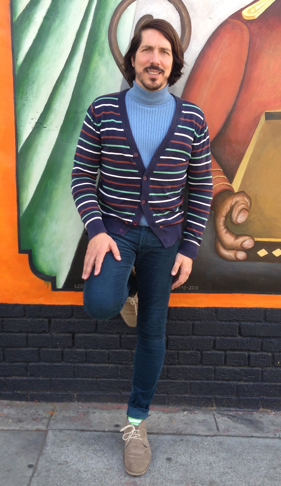 Skinny corduroy jeans by h&m, turtleneck by gap, cardigan by Forever 21 (men), socks by Topman and shoes by Michael Shannon.