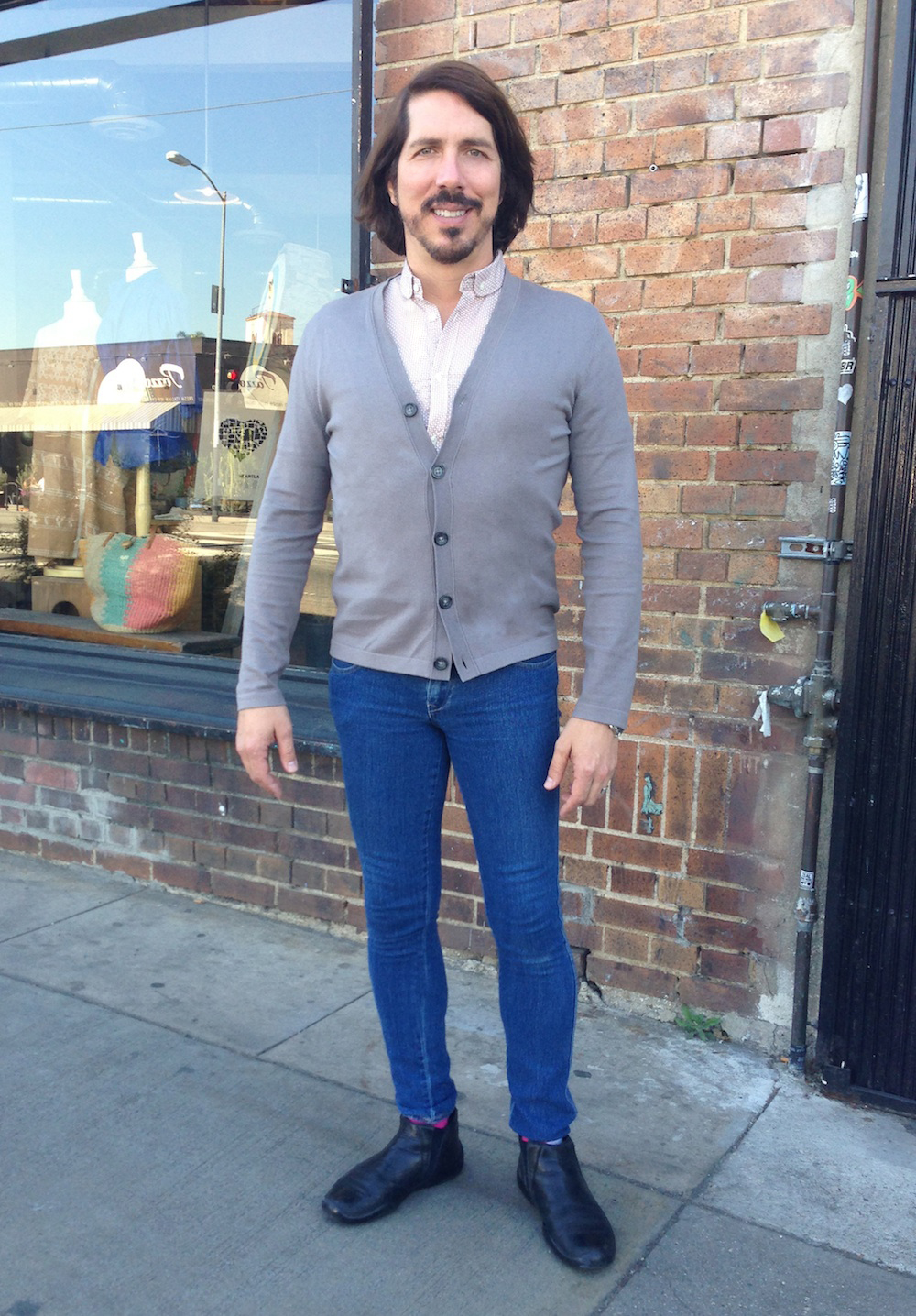 Shirt by Ben Sherman, cardigan by Banana Republic, Skinny Jeans by H&M, socks by TopMan and shoes by Prada.