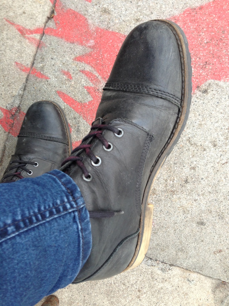 Skinny Jeans and Jacket with dark trims by h&m, turtleneck by gap. Black leather boots by Aldo.