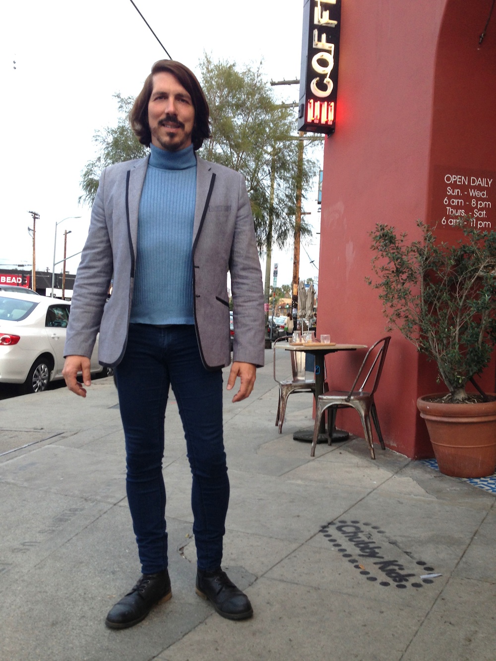 Gray skies in Los Angeles today. The turtleneck weather lingers and I take advantage of it. It will be months before I can wear cold weather clothes again.