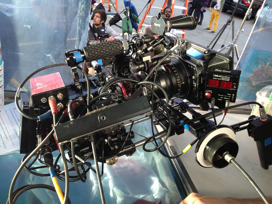 In the afternoon I was inside a food truck (that is what my character was “doing” today) and I got to interact with one of the camera men (the production requires 4 RED cameras. See picture of one of them below). His name is George Billinger and he has worked in incredibly big movies. Two of them -very recent- that I loved: Oblivion and Lincoln. We talked for hours, as much as the shoot allowed us, about the process of making those two movies that are also so different. I learned so much in so little time!