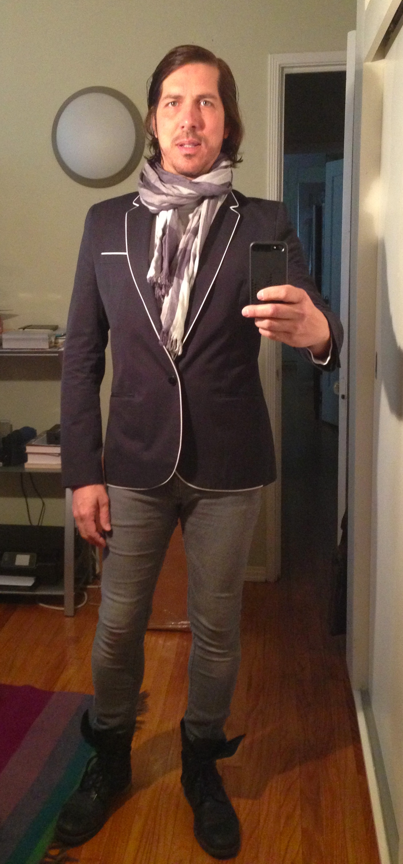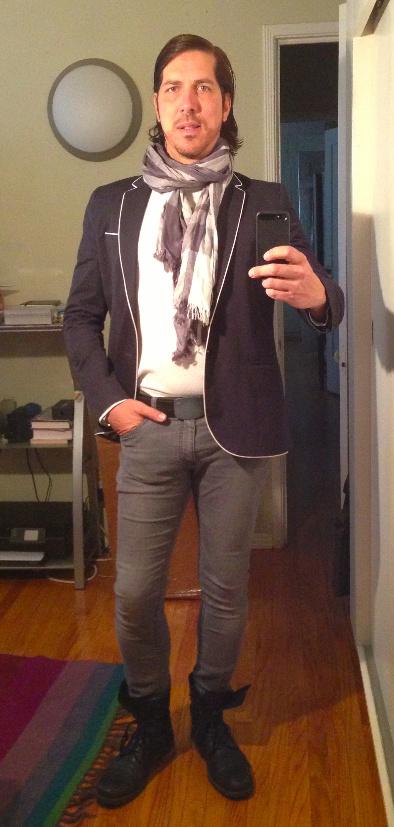 Today I wore skinny jeans and jacket by h&m and long sleeve t-shirt by gap. Boots by Aldo. Below you will see a picture of what I wore as my character, which included skinny jeans! yay!!!