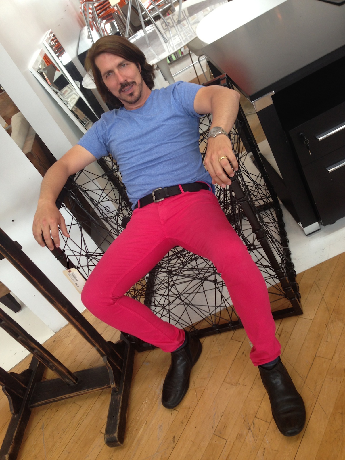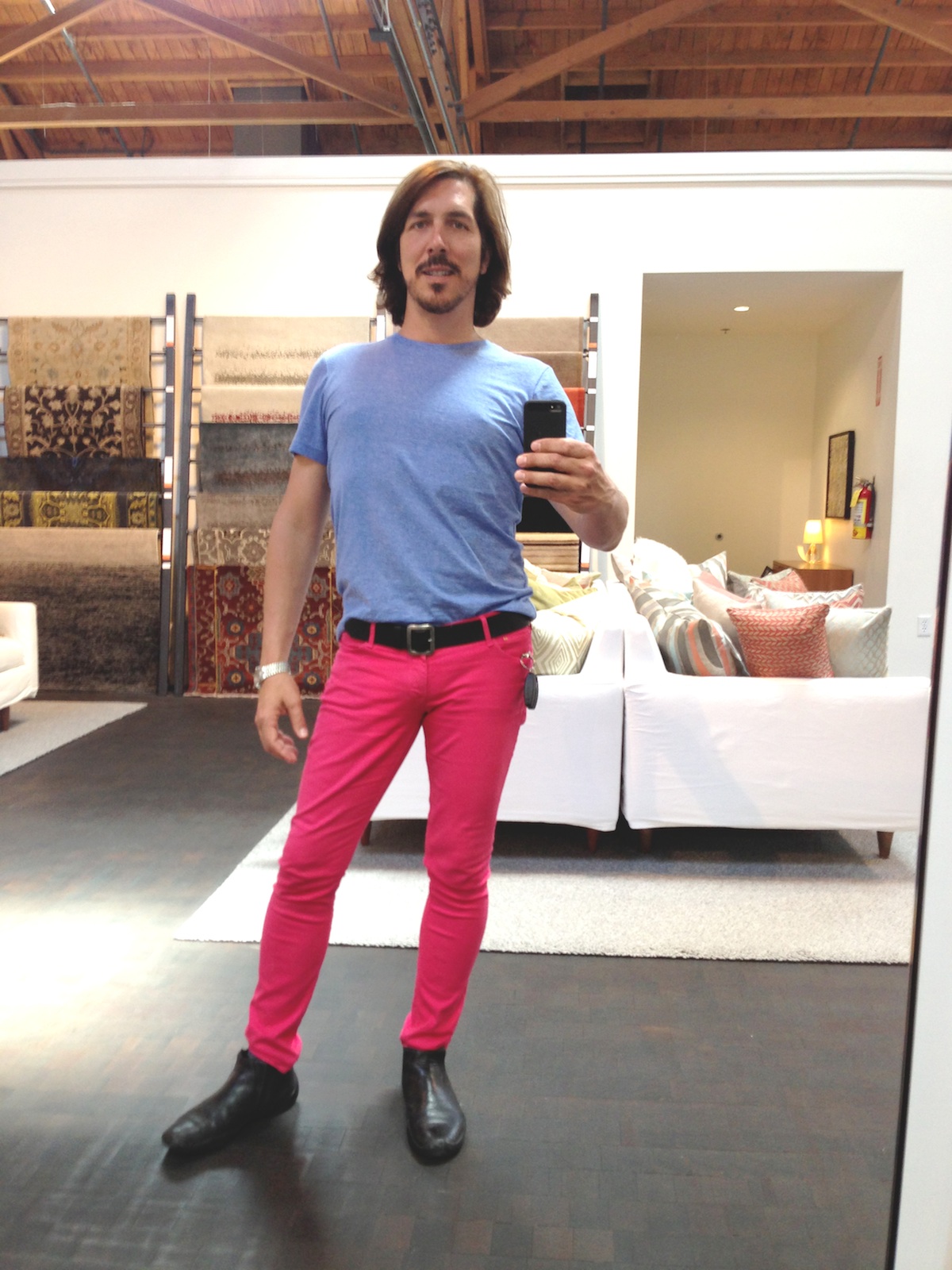 Skinny jeans (pink or coral!) and t-shirt by h&m, shoes by Prada and belt by Dean.