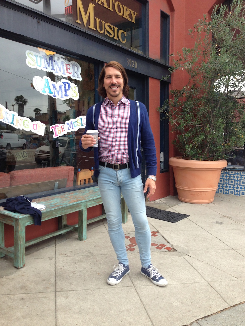 The other two pictures were taken in front of a small but adorable music conservatory in Silverlake (Los Angeles), sponsored by major artists including the Red Hot Chili Peppers (Flea is always around). The name of the place is Silverlake Conservatory of Music. Obviously I am holding a latte from Intelligentsia Coffee. Those places are part of the reason this area is so cool.