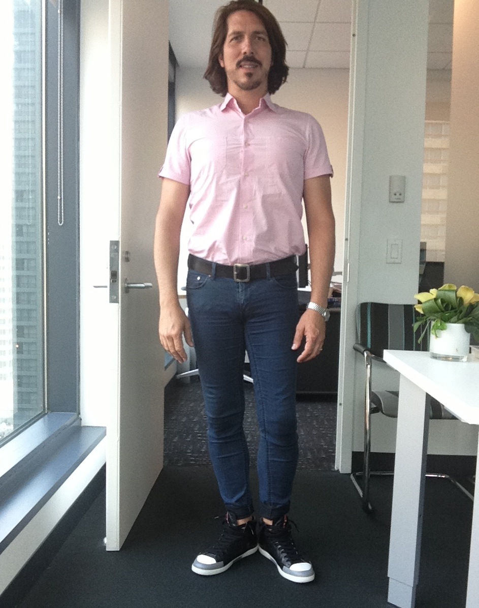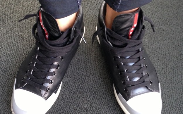 This skinny jeans by h&m are made with a very thin denim and that helps a lot. They are as light as they can be. Shirt by Benetton. And really really cool sneakers by Prada.