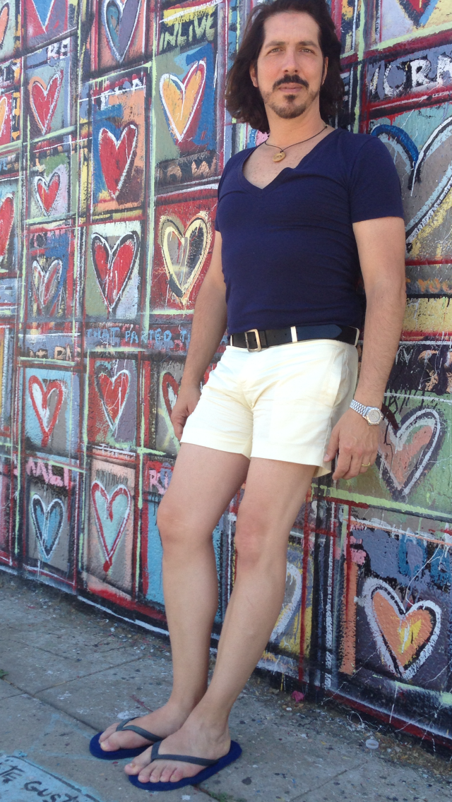 I’m wearing shorts by Parke and Ronen and a t-shirt by American Apparel.