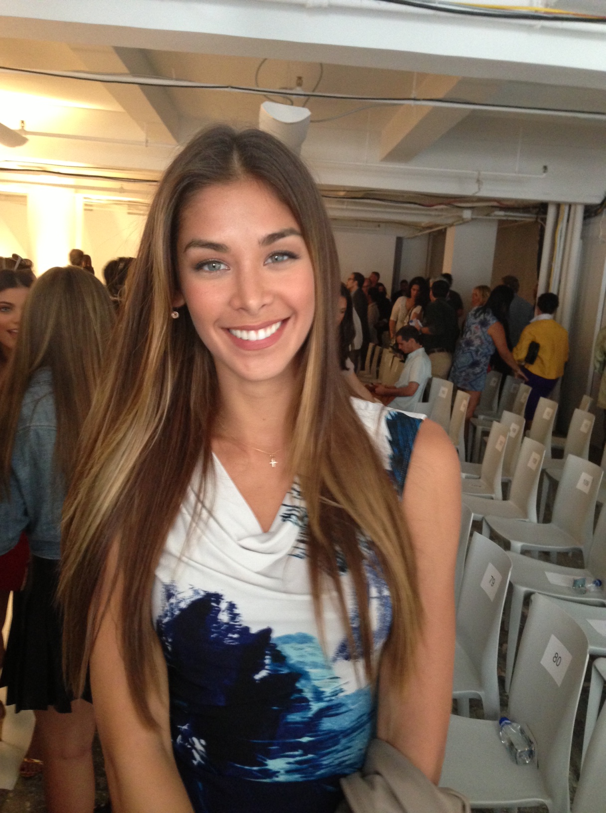 The first show was the Venezuelan designer Angel Sanchez, who gained international notoriety after designing the wedding dresses for Sandra Bullock and Eva Longoria. His Spring Collection for 2014 was clean, elegant and beautiful. In the crowd I saw the gorgeous Chiquinquira Delgado and Miss Universe 2008 Dayana Mendoza. Below you can see pictures of both women. Yes, Venezuelan women are truly beautiful.