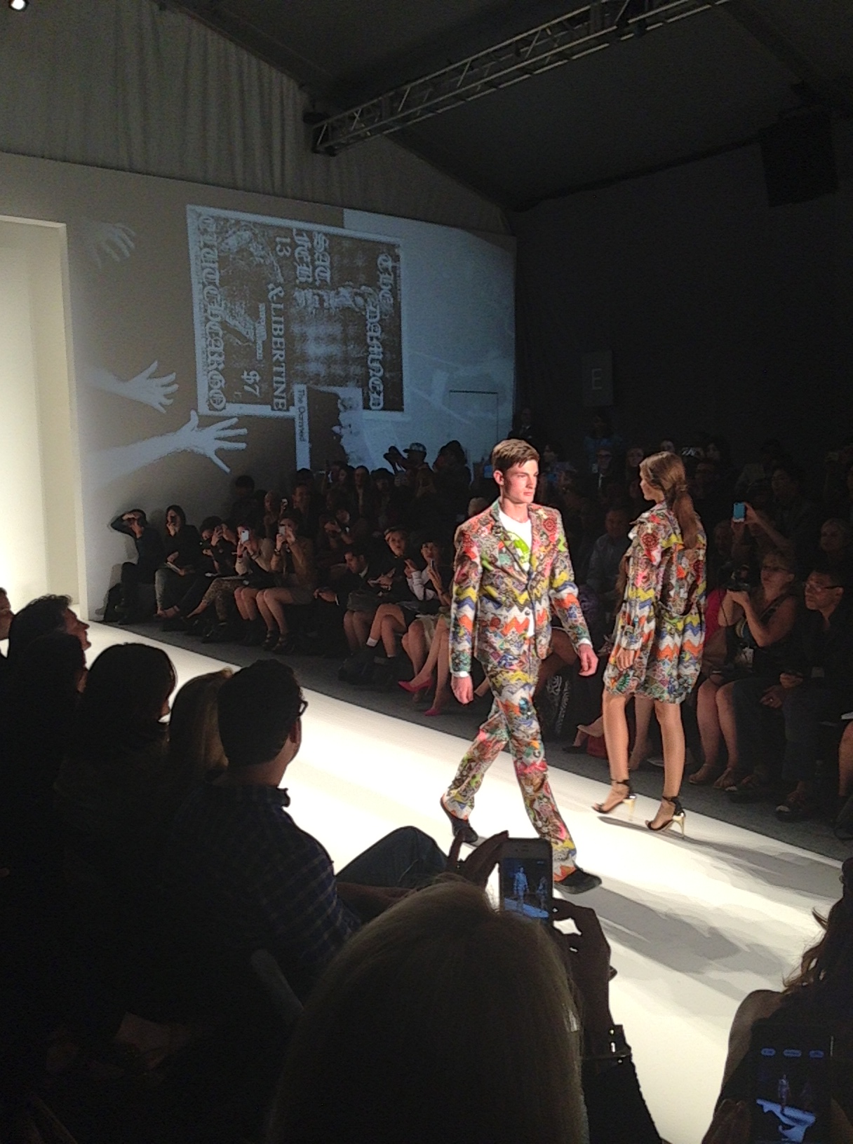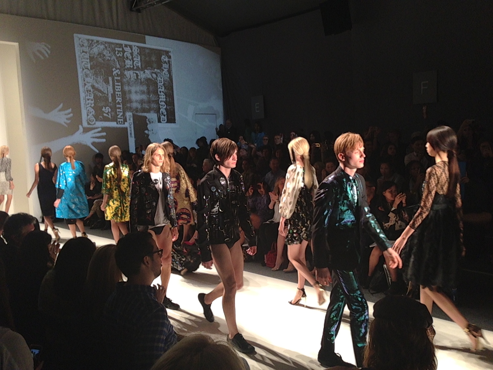 The second show tonight was Libertine at the main tent in the Mercedes Benz Fashion Week complex (At the Lincoln Center). An amazing collection of vintage and recycled clothes that have been altered adding unexpected elements like crystals, paint, buttons, etc making them almost works of art. It is the ultimate “bling collection” and it works! It is super cool and really fun, yet very elegant.