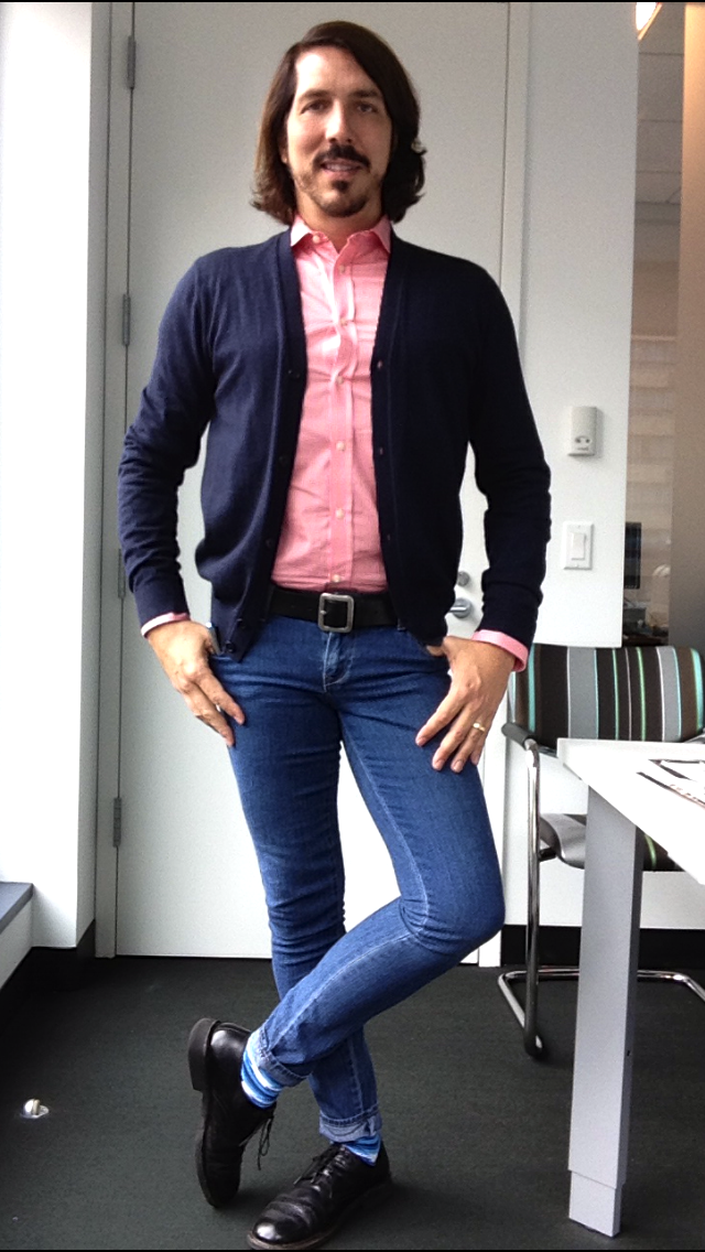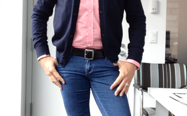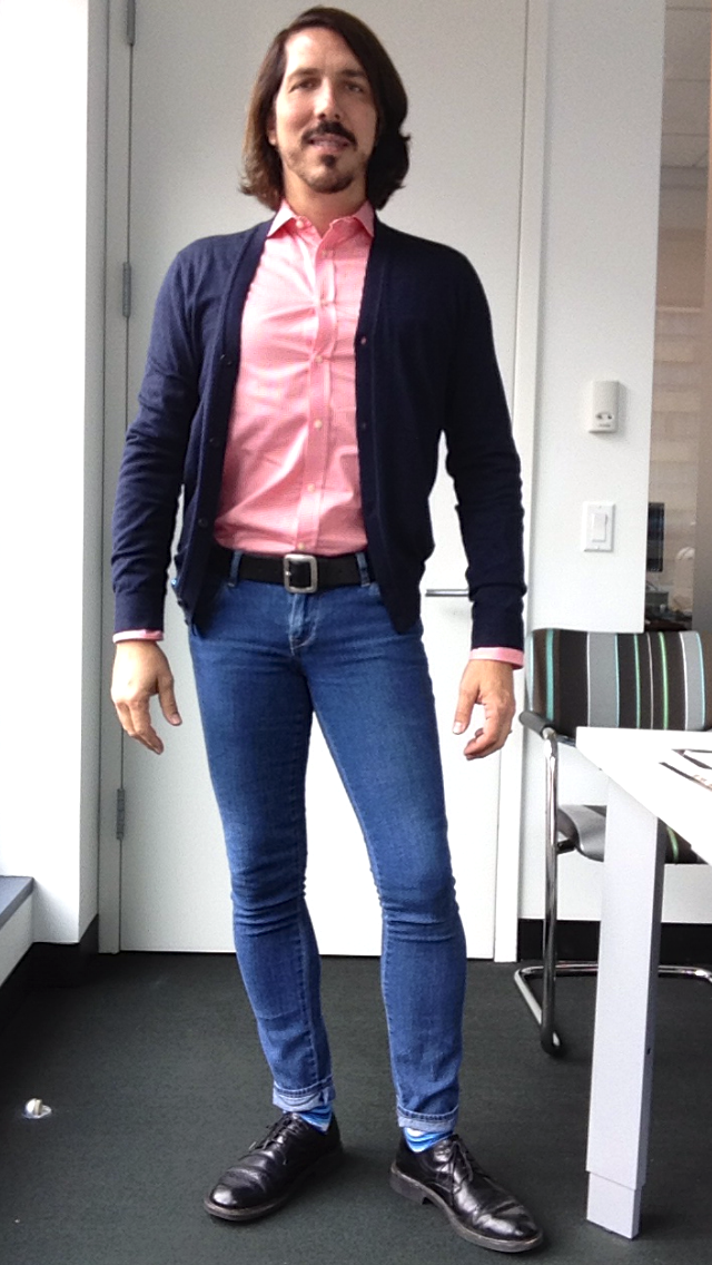 My skinny jeans and shirt are from H&M and my cardigan is Ben Sherman.