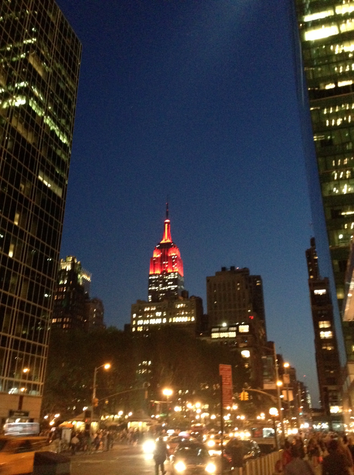 Today the temperature in New York keep rising and it was feeling almost hot. And the Empire State Building was lit red and looks gorgeous! See the pictures below.