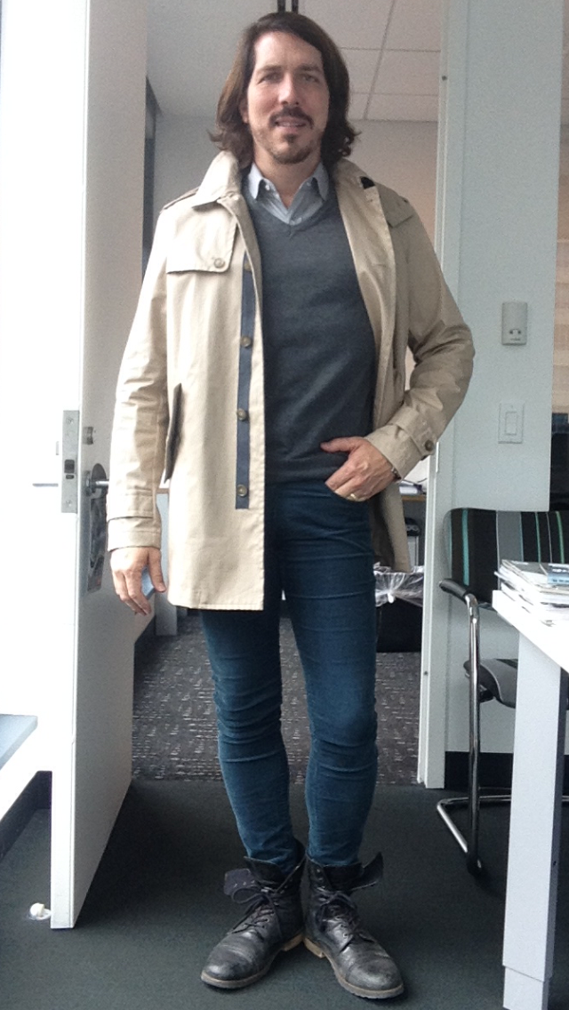 Skinny corduroy jeans by H&M (as well as the sweater), shirt by Benetton and Raincoat by Michael Kors. Boots by Aldo.