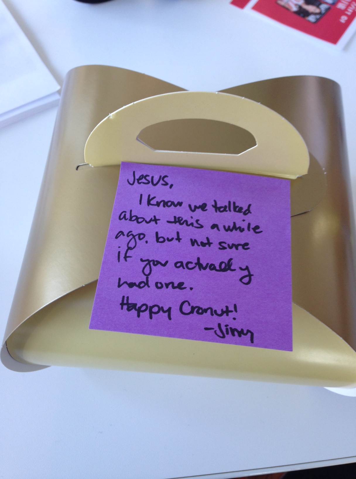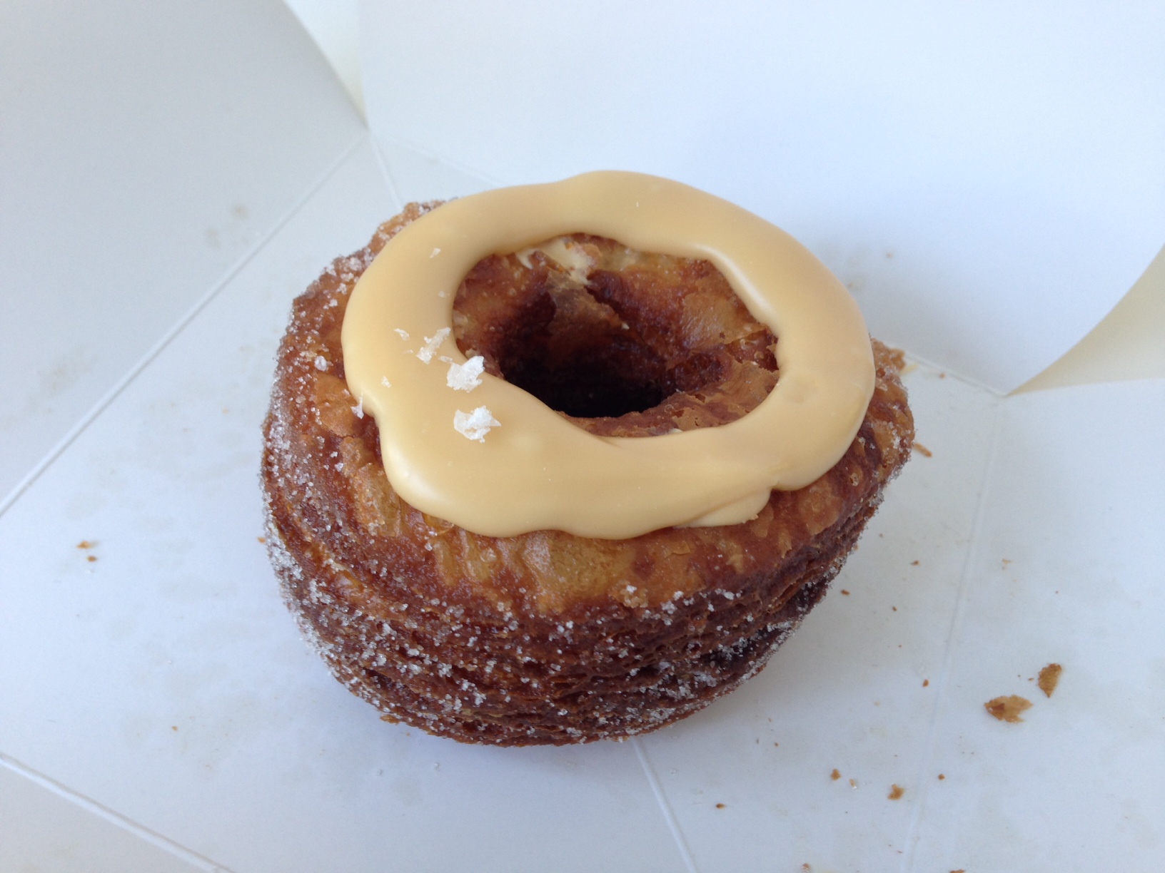 Today I tried a Cronut for the first time and I wasn’t disappointed! A Cronut is a New York thing that happens to be very yummy. A baker came up with this idea last May when he combined a croissant with a doughnut. It became an over night sensation and long lines form in front of the bakery every day. The bakery is Dominique Ansel Bakery and is located in Soho. A co-worker (who I will love forever) brought me one today (you can only buy two at the time).