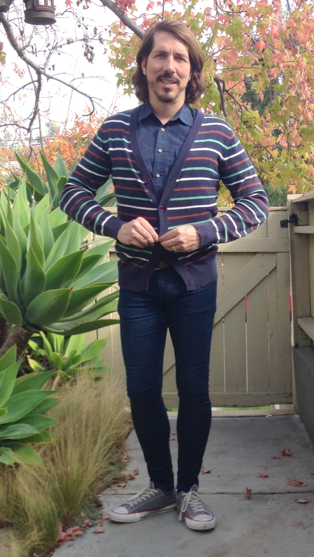 I am wearing skinny jeans by Topman, shirt by H&M, cardigan by Forever 21 (men) and shoes by Converse.