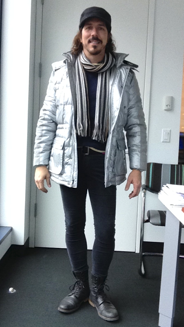 Today I wore skinny corduroy pants by Express, shirt by Benetton, sweater by Diesel, boots by Aldo and winter jacket by Calvin Klein.
