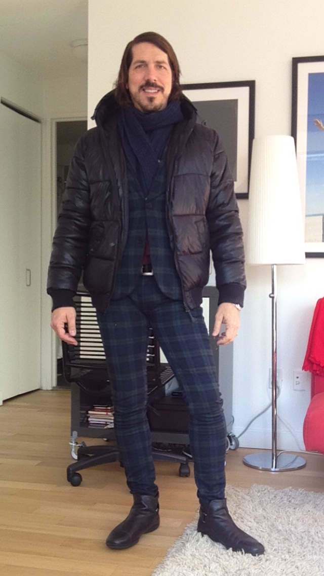 I wore one of my favorite suits and I must add that it is very successful, if we measure success based on how many complements the suit gets. It is from Zara and today I wore it with a turtleneck from UniQlo, a shirt and a puffy winter jacket from H&M and shoes by Prada (notice how nicely skinny the pants are, specially for a suit). I had a hat also from UniQlo (you can barely see it in one of the pictures) that I lost at one point on my way to the theatre. There you have it: the Friday 13th curse! (I’m kidding of course).