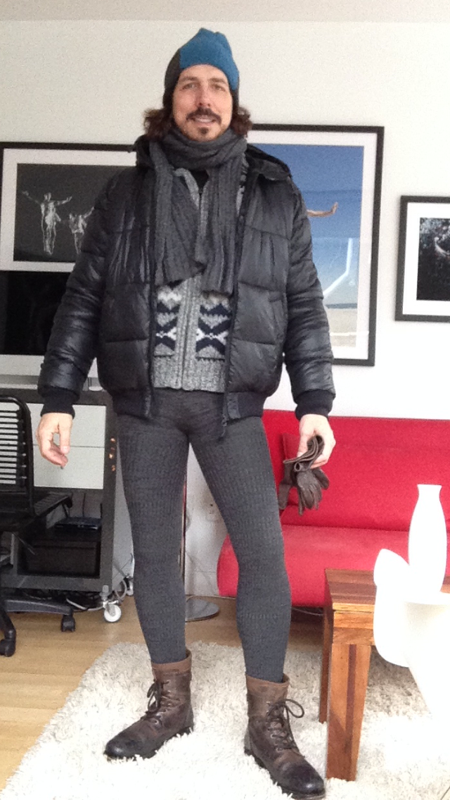 I wore a turtleneck by GAP, fleece sweater and pants by UniQlo, wool sweater by Abercrombie and Fitch, jacket by H&M and boots by Aldo.