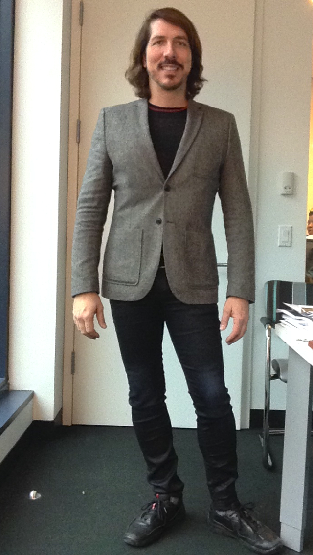 I wore today skinny jeans by G-Star, a sweater bu John Varvatos, jacket by H&M and shoes by Prada.
