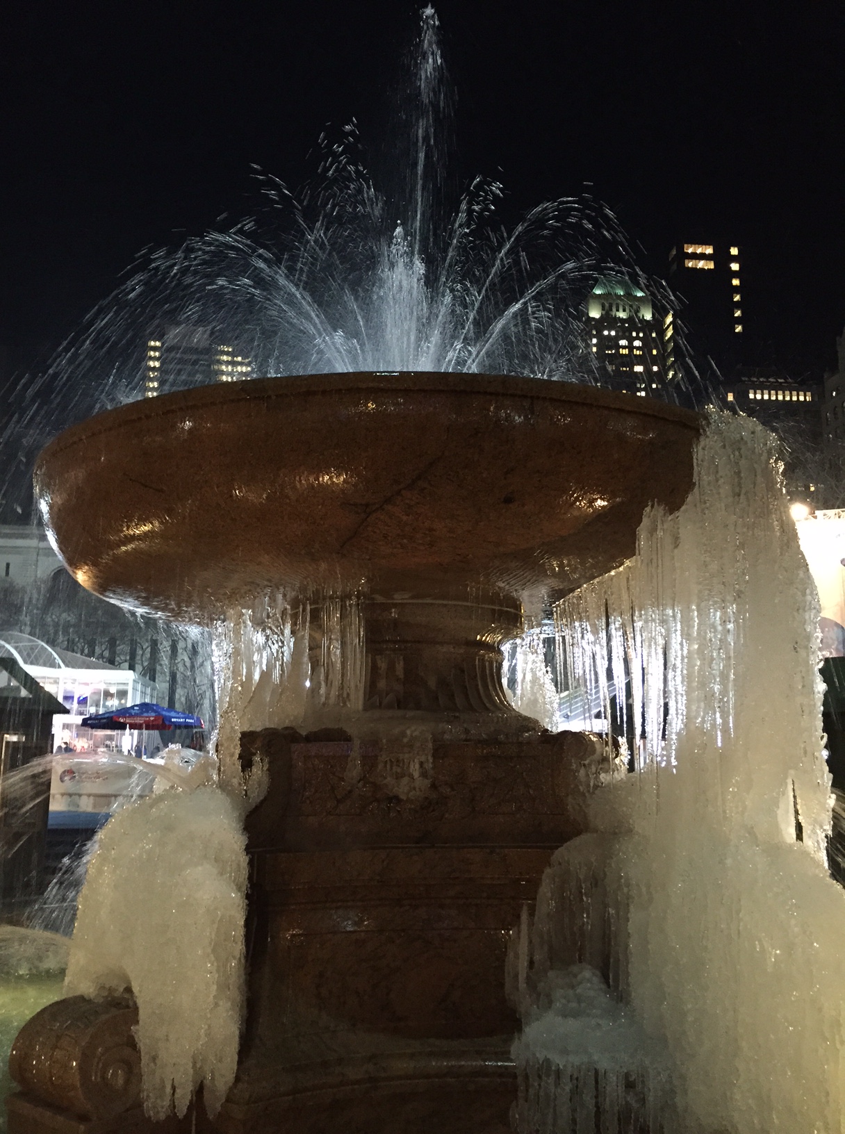The fountain was frozen: