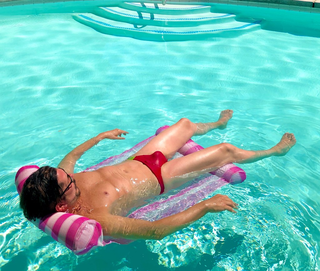 Here are some images of me, with my new physique and wearing bright colors that motivate me to keep exercising (or, in some photos, wearing nothing but shoes!).